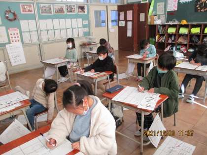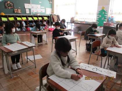 形に気をつけて、フエルトペンで書きました。姿勢良く、真剣に取り組んでいました。