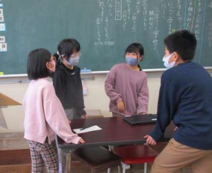 学年を超えて交流する計画を進めています。今日は役割分担を決めています。やる気満々です。