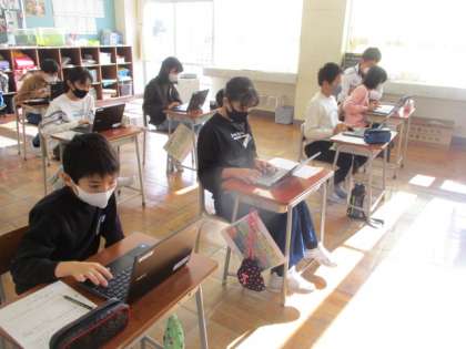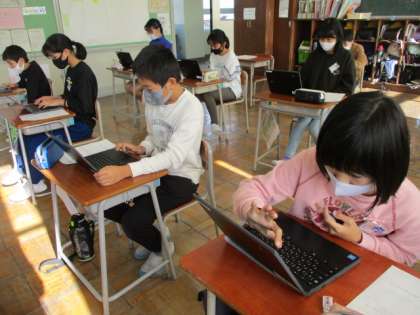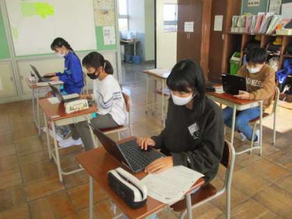 自分の課題について調べたことをクロムブックを使ってまとめています。