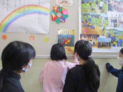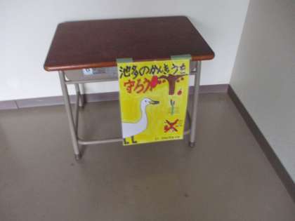 学校にも「池多の環境を守ろう」というポスターを掲示しました。多くの人に見てもらえるように掲示場所をみんなで相談しました。