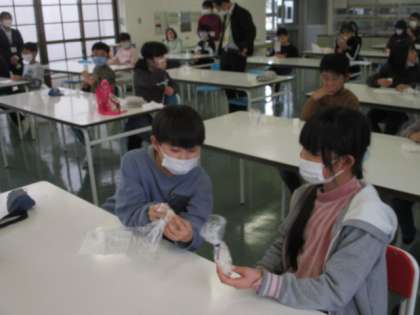 理科で観察、栽培していたヘチマ。ヘチマたわしを作ったので4年生が、全校のみんなにプレゼントしてくれました。