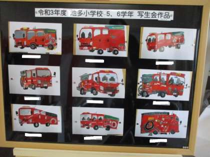 シャッターの絵に選ばれた子供も紹介されました。池多小学校5・6年生全員が取り組みましたので、全員の作品も掲示してありました。ありがとうございます。