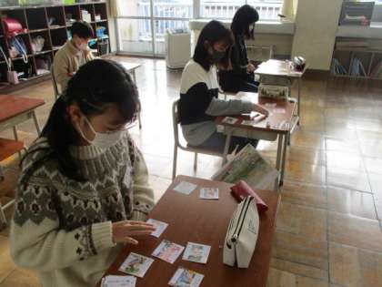 歴史学習の確認として、歴史人物カルタに取り組んでいます。