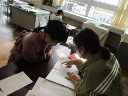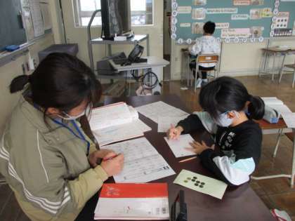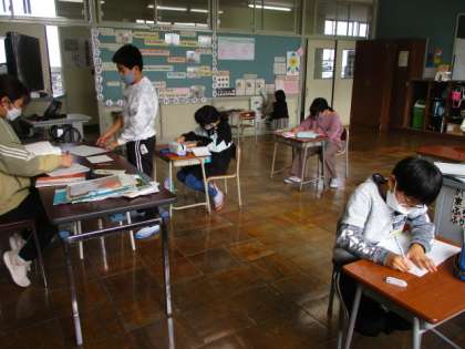 4年生は、漢字の復習です。間違えやすい漢字について担任が個別にチェックをしまし、繰り返し練習と確かめをしました。