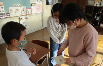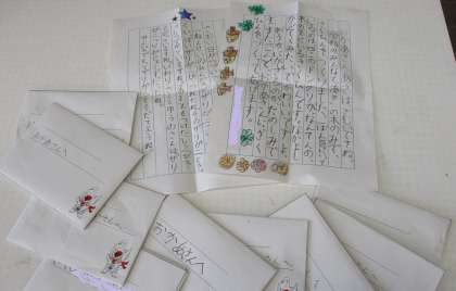 家族や先生、友達にお手紙で楽しかったことを知らせました。「お手紙、書いたことあるよ。」「お手紙って、もらうとうれしいね。喜んでくれるかな。」と、送る相手の顔を思い浮かべながら書いていました。