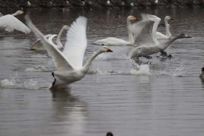 9時ごろ、まだ白鳥が田尻池にたくさんおり、運よく羽ばたく姿にも会えました。
