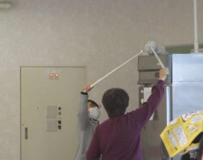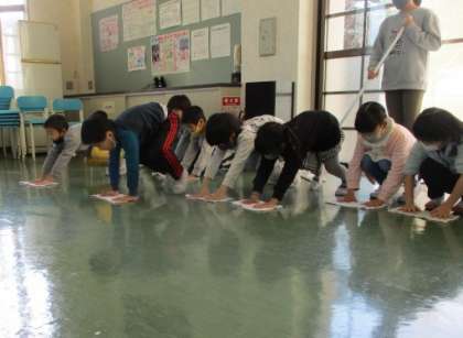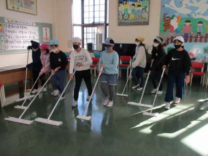 全校児童で、給食後、ランチルーム清掃を行いました。