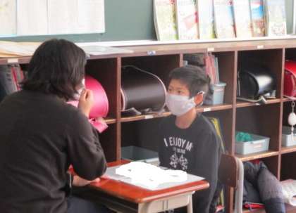 担任の先生から、一人一人に二学期にがんばったことや、成長したことを伝えてもらいながら「あゆみ」をもらいました。