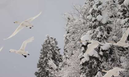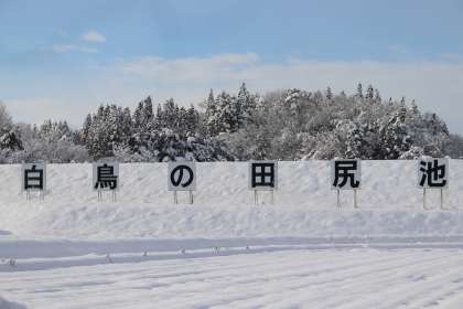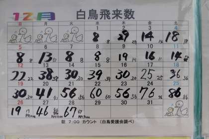 今日の田尻池には67羽の白鳥が観測されました。 寒波が来て、雪の田尻池です。