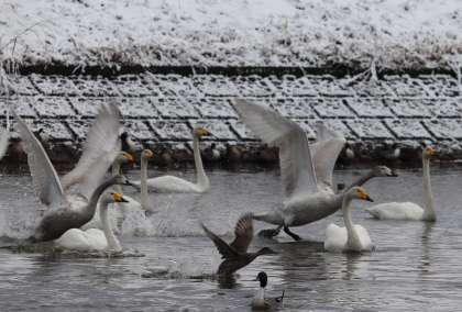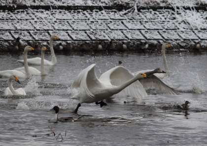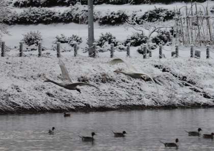 今日は、なぜか一度池の上を旋回して、また着池しました。