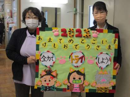 エスポワールこすぎ様より、大型年賀状が届きました。毎年いただいています。ありがとうございます。図工室に飾ってあります。