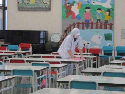 給食が終わったランチルームで調理員さんが毎日の環境整備に勤しんでいる姿を感じながら今月の給食集会の計画を立てました。