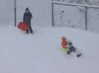 待望の雪遊びです。 スキー山からそり遊びを楽しみました。