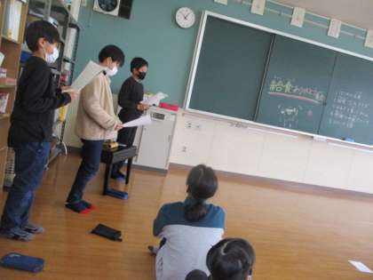 来週から始まる学校給食週間に先立ち、給食委員会による集会を行いました。