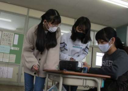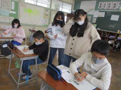 課題が早く終了した6年生は、友達の取組を見守ったり、5年生のサポートをし足りしています。