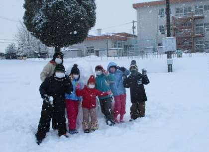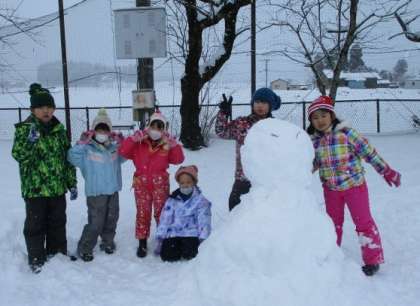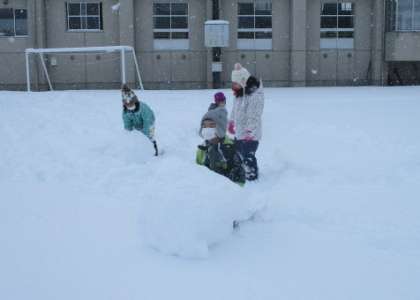 学校に残った1・2・3年生で、雪で造形を楽しみました。