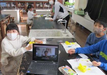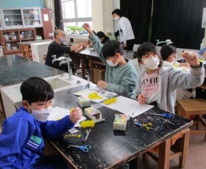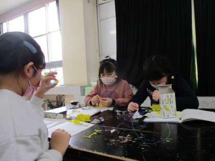学習教材セットを使って、電流が流れる仕組みを学びます。今日は部品を組み立てました。欠席のお友達もにオンラインで内容が分かるようにしています。
