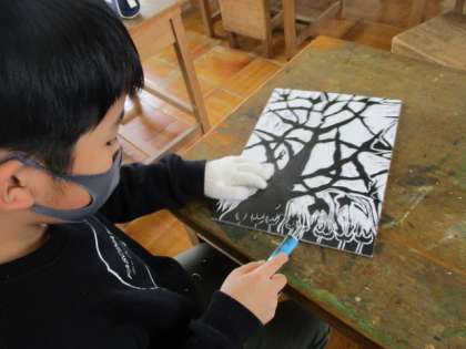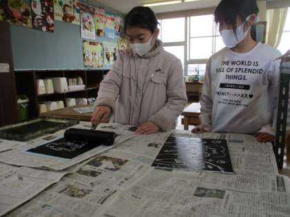版画の印刷に取り組みました。 試し刷りをして修正もしました。