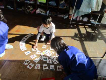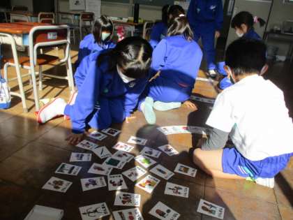 池多かるた、百人一首も楽しいですが、今日はぐるぐるしりとりカードで楽しんでいます。