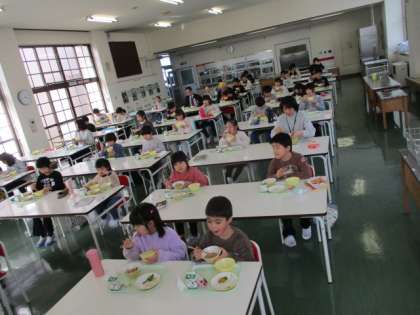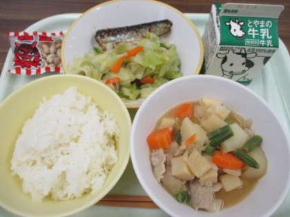 1月も最終日です。今日の献立は、ごはん、牛乳、イワシの土佐煮、野菜ソテー、豚肉とジャガイモのうま煮です。