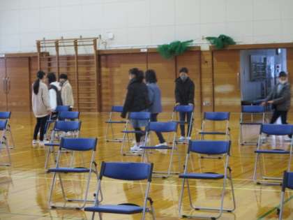 5・6年生は、登校後すぐにPTA全体会の会場づくりをしました。