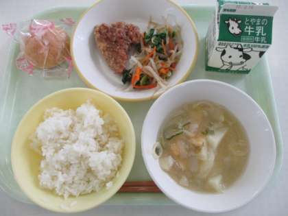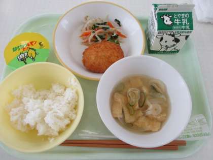 ごはん、牛乳、胡麻和え、みそ汁は共通です。