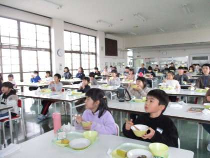黙食の給食時間に、温かい笑顔と拍手が生まれています。