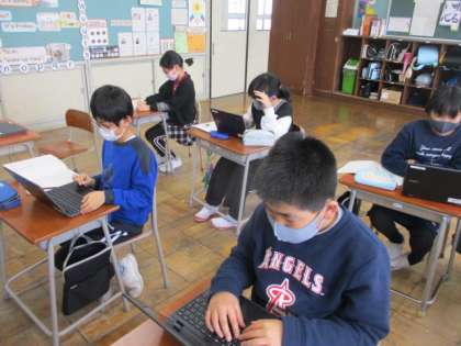 クロームブックを使い、調査したいことの情報を集めるためのアンケートを作成しました。