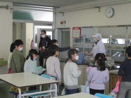 今日の献立は、ソフト麵、牛乳、五目あん、ゴマダレポテト、切り干し大根のドレッシング和え、味付け小魚です。