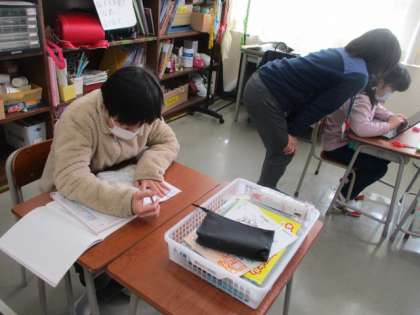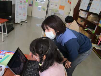 問題に取り組んでいます。書き込んで解いたり、クロムブックで解いたりします。どちらもすらすらと取り組めるようになりました。