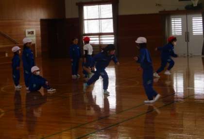 いつも低学年で一緒に活動していた1・2年生ですが、感染予防対策のため、1年生だけ、2年生だけと分かれて体育を行いました。