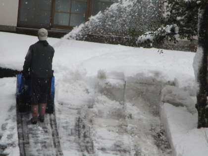 明日も雪との予報です。 夕刻まで除雪作業が続きました。