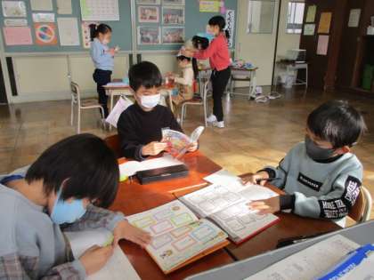 それぞれ、ゲーム係、劇係、クイズ係、プレゼント係になって、みんなが楽しくなるように相談しながら進めています。