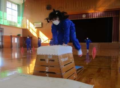 開脚飛びが安定してきました。 手をつく位置を意識して練習しました。