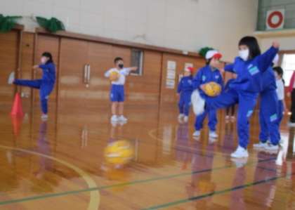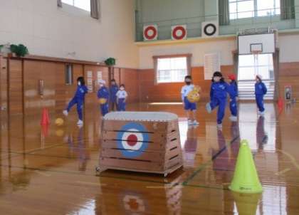 ボールけりに挑戦です。 的に当たるようにボールをけりました。