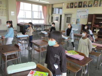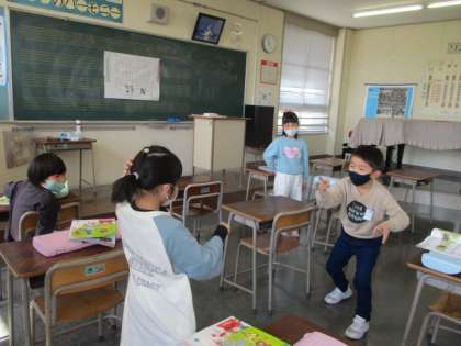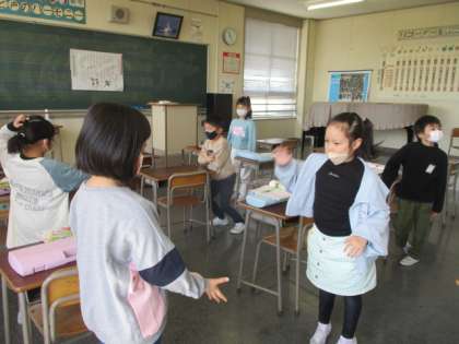 じゃんけんゲームをしてリラックスしてから、卒業式の歌を練習しました。