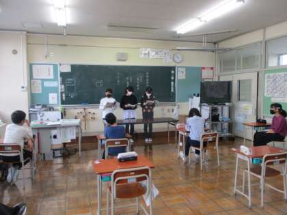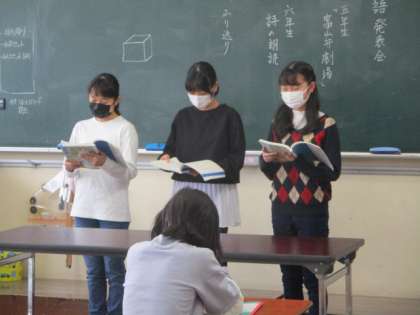 5年生は方言について、6年生は詩の朗読を発表しました。それぞれの学年の取組を聞き、感想を述べあいました。