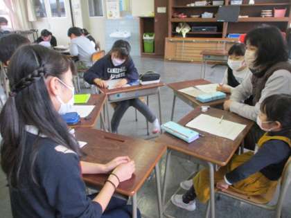 登校の振り返りと、新一年生も入った登校グループについての確認をしました。新年度に向けて準備が整ってきました。