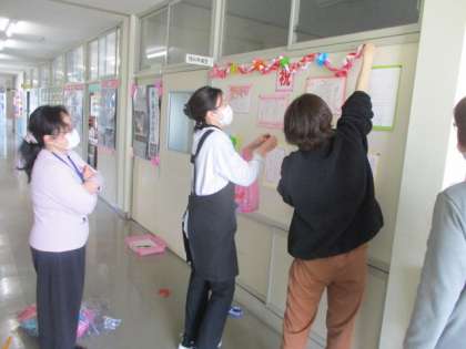 心を込めて飾りました。スクールサポートスタッフオリジナルのブーケが華やかです。