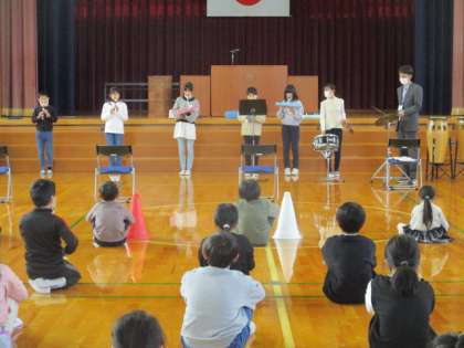5・6年生が音楽科の時間に取り組んだ演奏を、昼休みに披露しました。