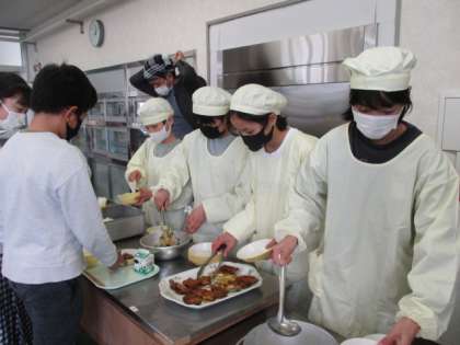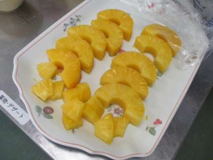 6年生にとっては最後の給食です。カットパインが柔らかく甘くお祝いをしているようでした。