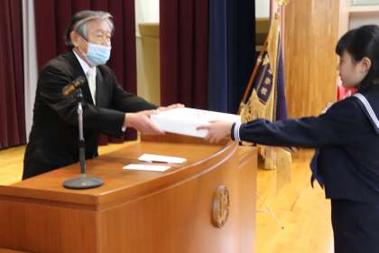 池多地区自治振興会、教育後援会、PTAから、卒業祝い品をいただきました。