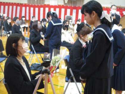 家族に感謝の気持ちを込めて、花束を贈ります。