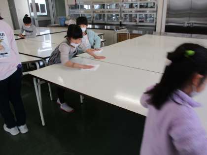 おいしい給食を、全校で毎日ランチルームで食べることができたことに感謝して、丁寧に掃除をしました。