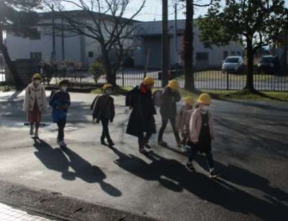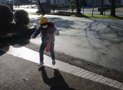 春の朝日に背中を押されて元気に登校しました。