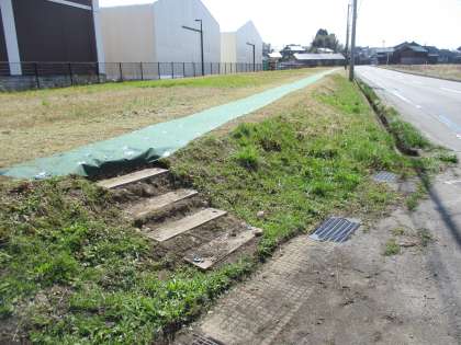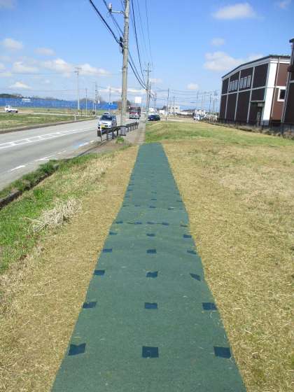 平岡地区の方々が、児童の安全な登下校のためにシートをひいてくださいました。