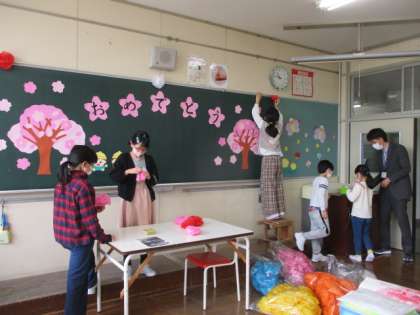 全校児童がそれぞれ明日の入学式に向けて、準備や清掃を行いました。やる気いっぱいでてきぱきと仕事を進めていました。活動の中では、気持ちのよい挨拶も聞こえてきました。とても頼もしかったです。