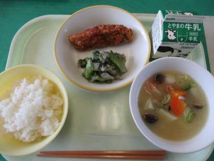 令和4年度初めての給食がスタートしました。全校みんなでおいしくいただきましょう。