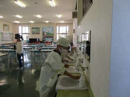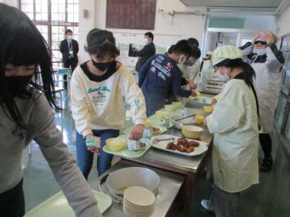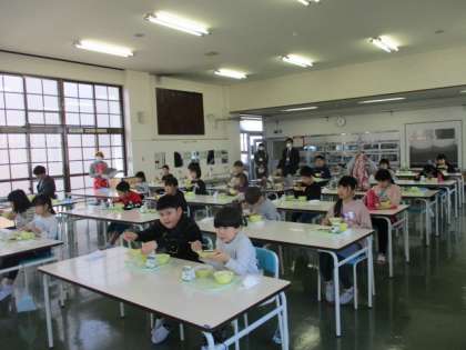 5、6年生はてきぱきと準備を進め、下級生のお手本になっていました。おしゃべりをせず、静かに給食を食べていました。