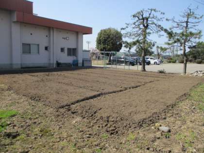 自治振興会長さんが畑を耕してくださいました。畑では、どんな作物が育つのでしょうか。子供たちも活動が楽しみになります。ありがとうございました。